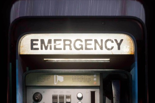 La escena se centra en la apertura de una puerta de seguridad dentro de una instalación deteriorada, donde destaca un teléfono de emergencia, elemento que funcionaba como punto de guardado en el título de 2014.