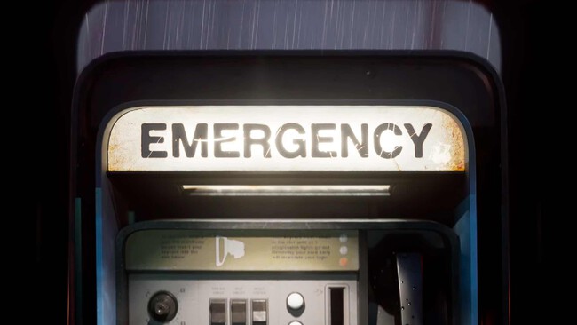 La escena se centra en la apertura de una puerta de seguridad dentro de una instalación deteriorada, donde destaca un teléfono de emergencia, elemento que funcionaba como punto de guardado en el título de 2014.